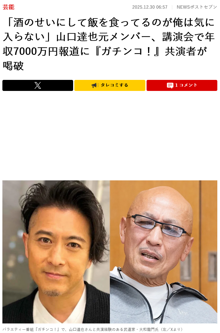 山口達也免許更新!削除された記事が3件あります.見る