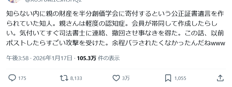 | … | 50無念Nameとしあき26/01/18(日)02:40:24No.1380923478+これ創価学会内でも離反されるんじゃないかって気がするんだよなあ |