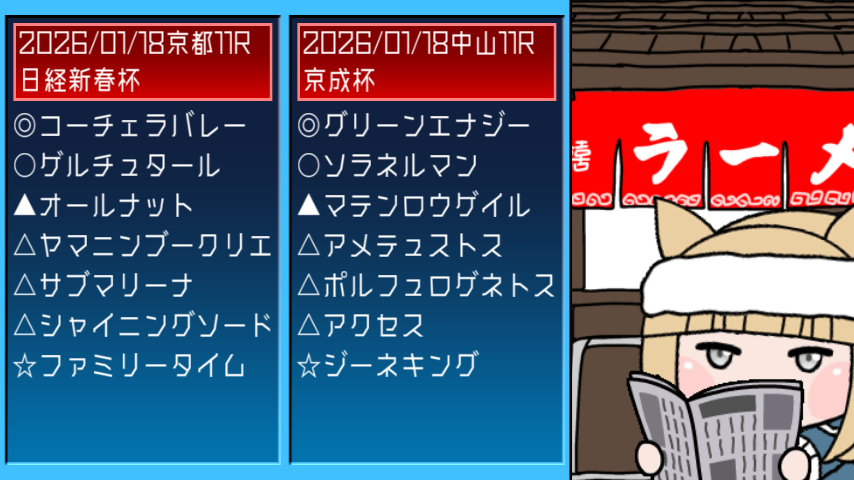 | … | 2無念Nameとしあき26/01/18(日)00:53:12 ID:yR.tMEz6No.1380908830そうだねx9 1768665192934.jpg-(81041 B) 今更ですが重賞レースの告知はG1レースの時だけやります |