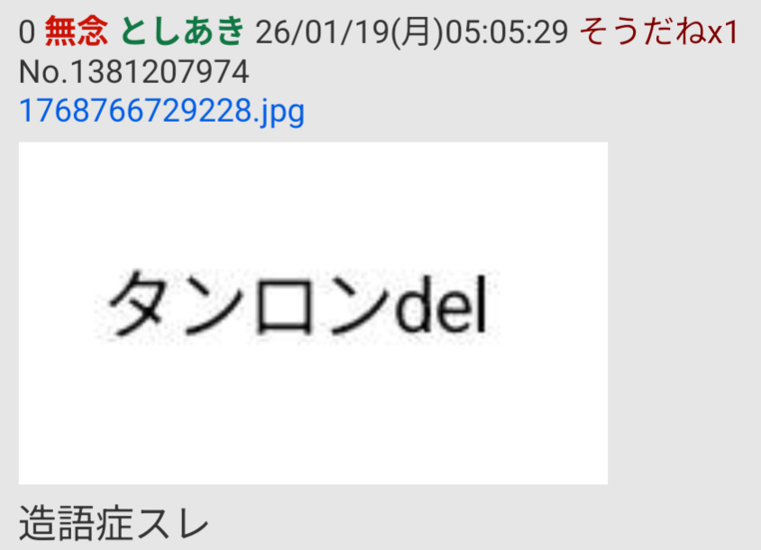 | … | 70無念Nameとしあき26/01/19(月)07:55:39No.1381215380そうだねx2>>これも造語症だと判ってますか〜? |