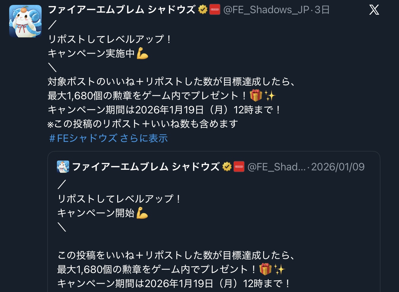 | … | 21無念Nameとしあき26/01/19(月)12:20:05No.1381245256+>FEHのプレイヤーにシャドウズまだプレイしてる人居るんか |
