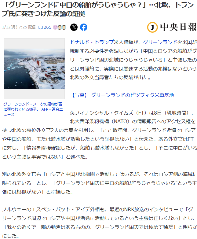 | … | 10無念Nameとしあき26/01/19(月)12:26:42No.1381246491+グリーンランドの人は歓迎してるんじゃないの |