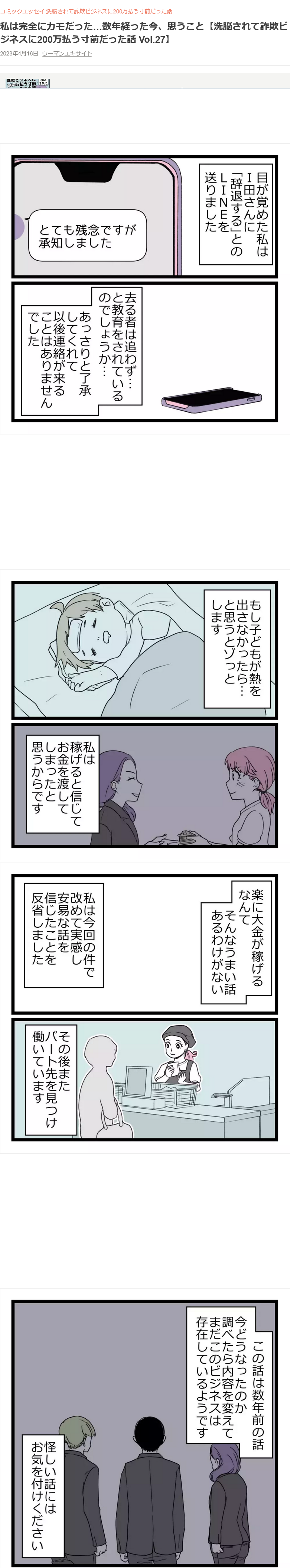 | … | 42無念Nameとしあき26/01/20(火)09:20:40No.1381437552+これは「詐欺に引っかかったアホな妻」の漫画なん? |