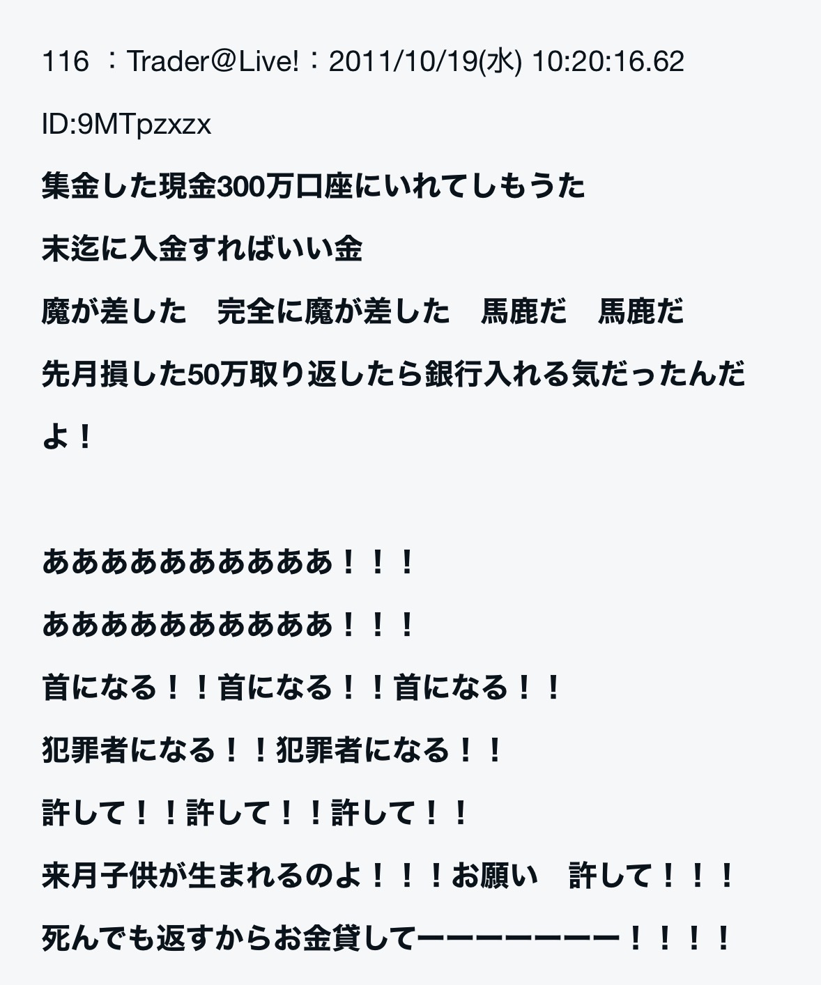 | … | 117無念Nameとしあき26/01/20(火)09:54:13No.1381441410+ 1768870453710.jpg-(225872 B) >儲かったら返せるから無断で共有資金からお金借りるね |