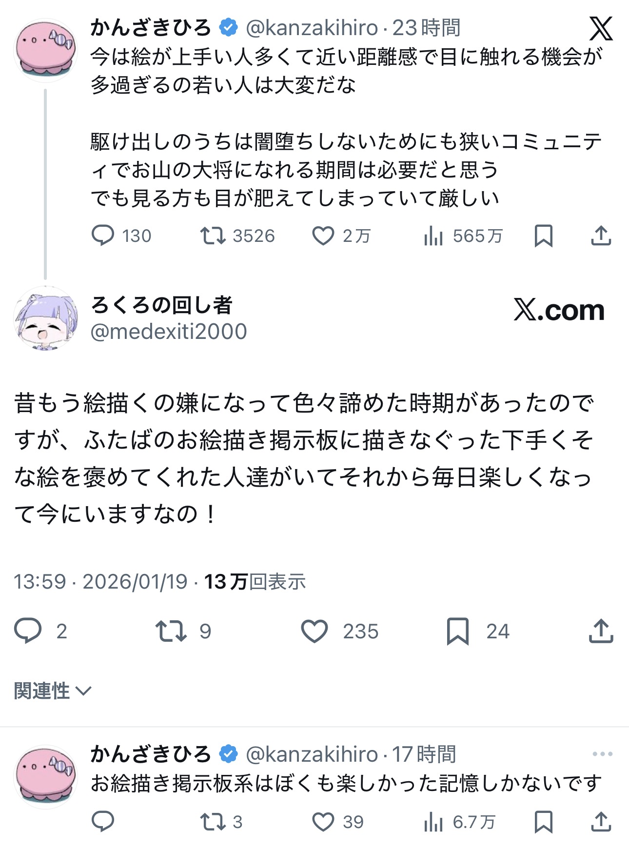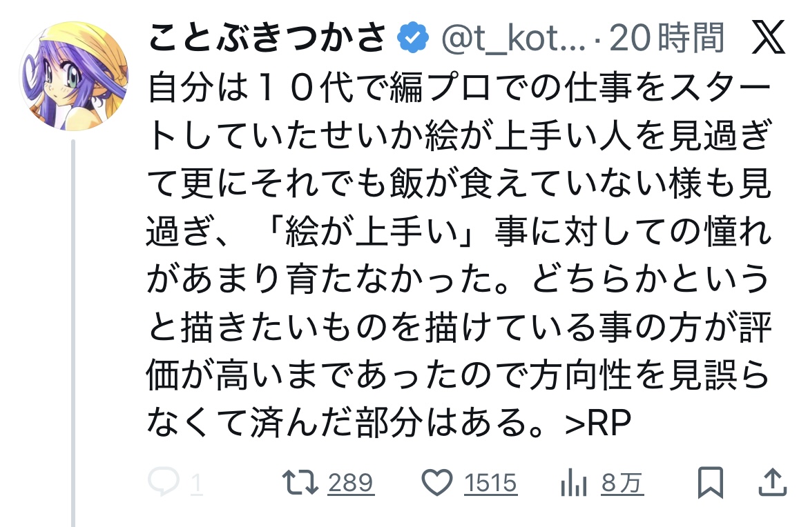 | … | 55無念Nameとしあき26/01/20(火)10:44:11No.1381447805+上位存在とか自意識過剰だよ絵師に必要なのは真面目で地味な手仕事それを怠らないなら見てくれる人は十分いる |