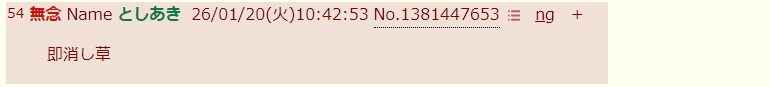 | … | 54無念Nameとしあき26/01/20(火)10:42:53No.1381447653+書き込みをした人によって削除されました |