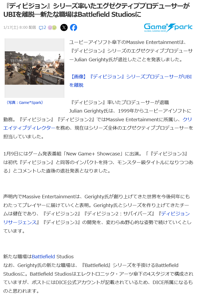 | … | 108無念Nameとしあき26/01/20(火)11:28:34No.1381453769+ここはIPと開発スタジオの終着駅みたいなところだったよな |