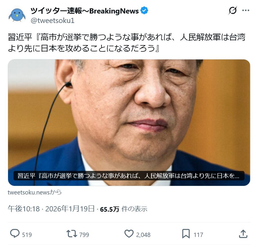 | … | 96無念Nameとしあき26/01/20(火)14:08:34No.1381481505+>【悲報】中国共産党、日本の中革連支持を表明 |