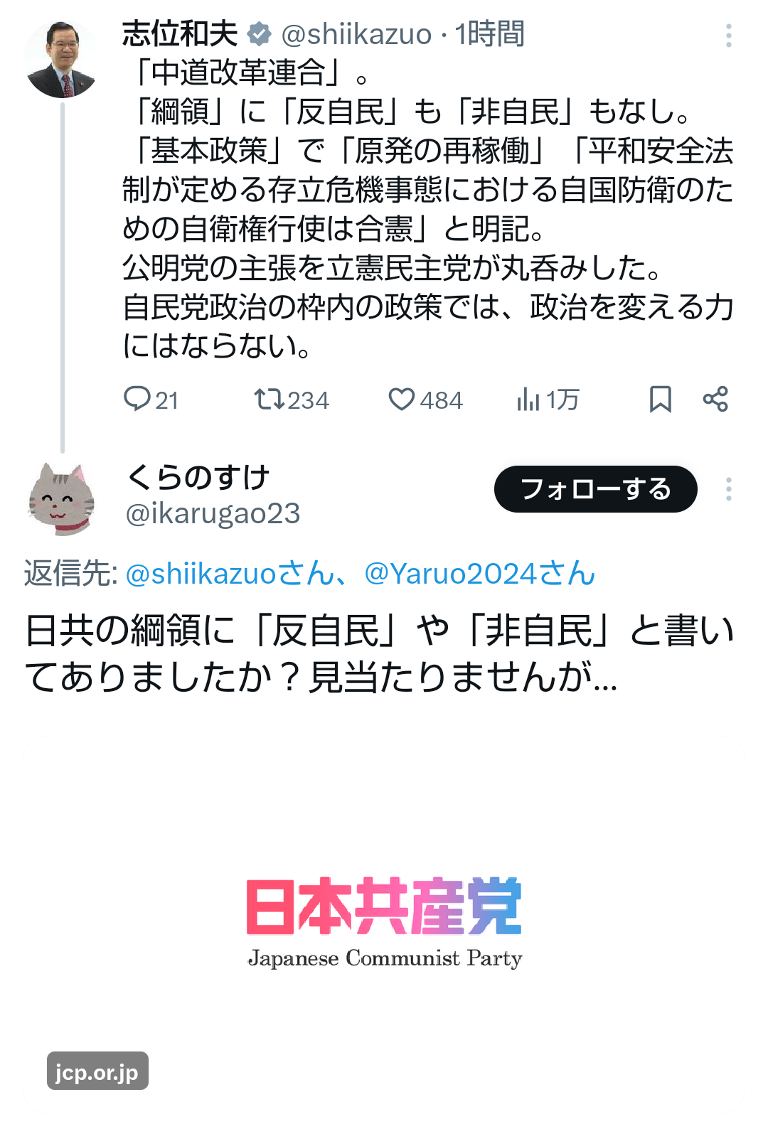 | … | 130無念Nameとしあき26/01/20(火)15:06:13No.1381490102+なんで俺たちを呼ばないんだ!?ってみっともなく喚いてた共産党 |