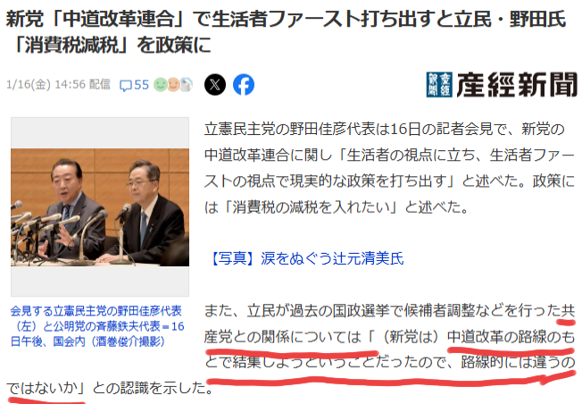 | … | 150無念Nameとしあき26/01/20(火)15:50:24No.1381497166+別に立民支持者は誰も中道のこと叩いてないのに |