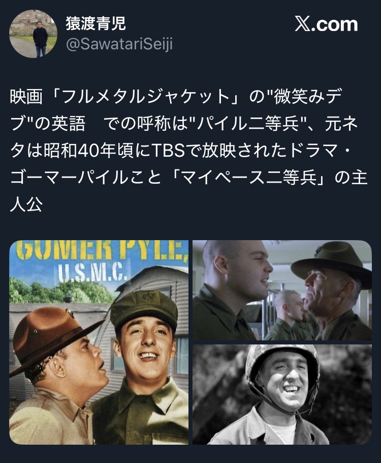 | … | 64無念Nameとしあき26/01/20(火)15:05:15No.1381489943+>本人も訓練兵を潰す悪い教官のつもりで演じてたのに映画公開されたら |