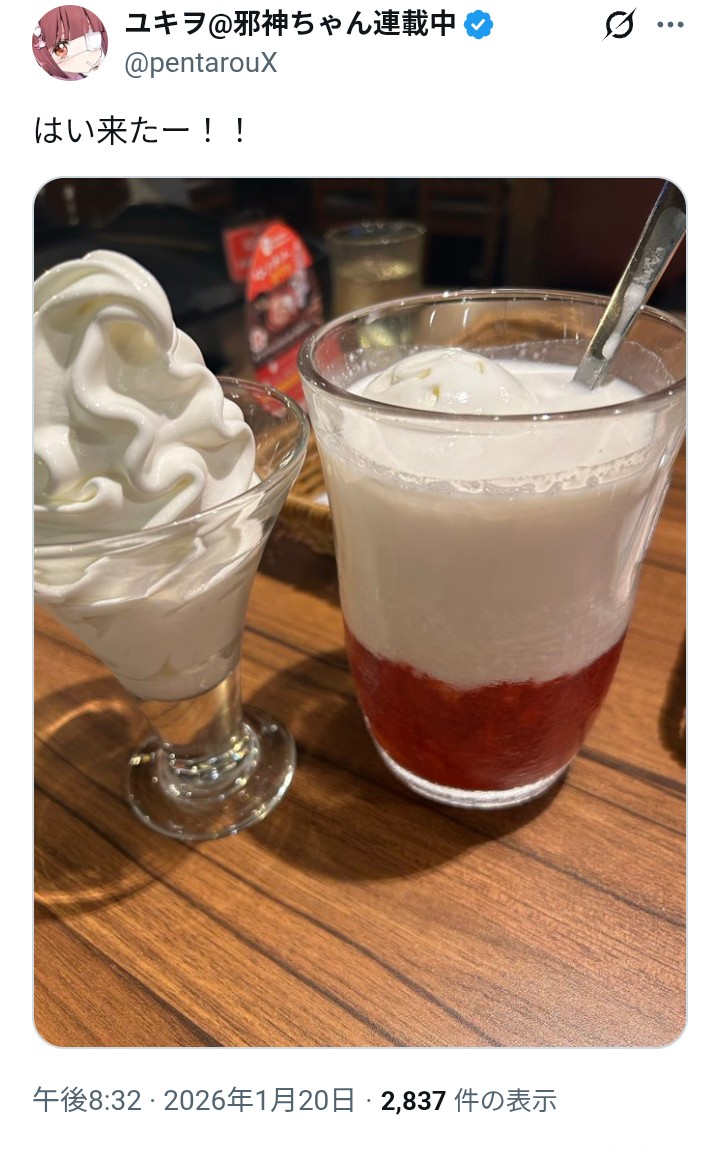 | … | 102無念Nameとしあき26/01/20(火)21:43:27No.1381575749+大地ちゃんにアイスクリームとケーキ買ってあげますね |