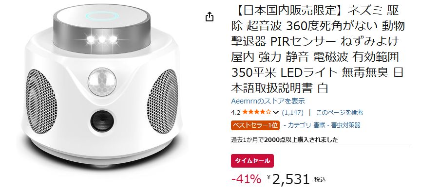 | … | 153無念Nameとしあき26/01/20(火)22:59:44No.1381595612+>>追加で超音波の忌避機も買おうかと |