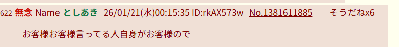 | … | 833無念Nameとしあき26/01/21(水)01:05:22 ID:Tv4laJt.No.1381619110+>居心地の悪い二次裏の他の掲示板と変わらなくなるので控えようので |