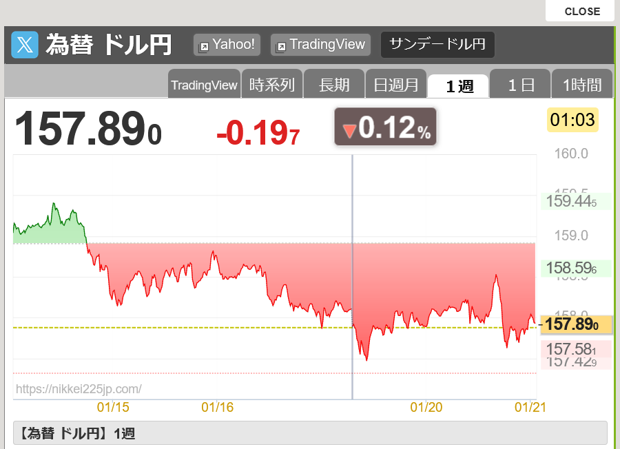 | … | 74無念Nameとしあき26/01/20(火)22:37:59 ID:C5Gz0zpUNo.1381589880そうだねx1なんか為替がビクンビクンしてるので |