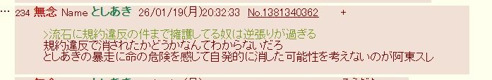 | … | 5無念Nameとしあき26/01/20(火)23:07:05 IP:126.166.*(panda-world.ne.jp)No.1381597527+>昨日も今日もずーっとスレ粘着していましたね |