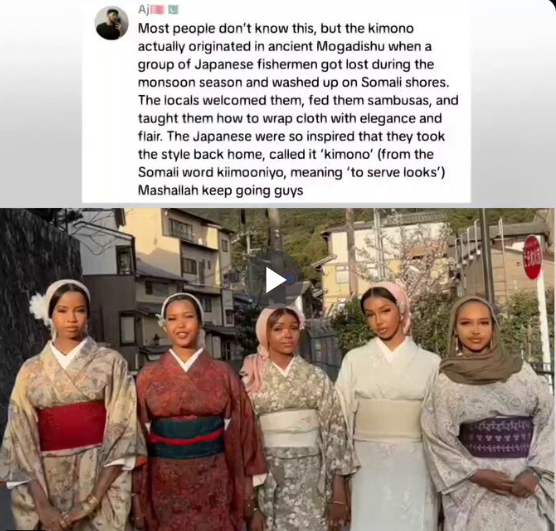 | … | 5無念Nameとしあき26/01/21(水)07:45:18No.1381639079+ほとんどの人は知らないかもしれませんが、着物は実は古代モガディシュで、モンスーンの時期に日本人漁師の一団が遭難し、ソマリアの海岸に流れ着いたことに由来しています。地元の人々は彼らを歓迎し、サンブサを食べさせ、布を優雅かつセンス良く巻く方法を教えました。日本人は非常に感銘を受け、そのスタイルを母国に持ち帰り、「着物」(ソマリ語の「kiimooniyo」から「見た目を整える」という意味)と名付けました。マシャアッラー、頑張れよみんな |