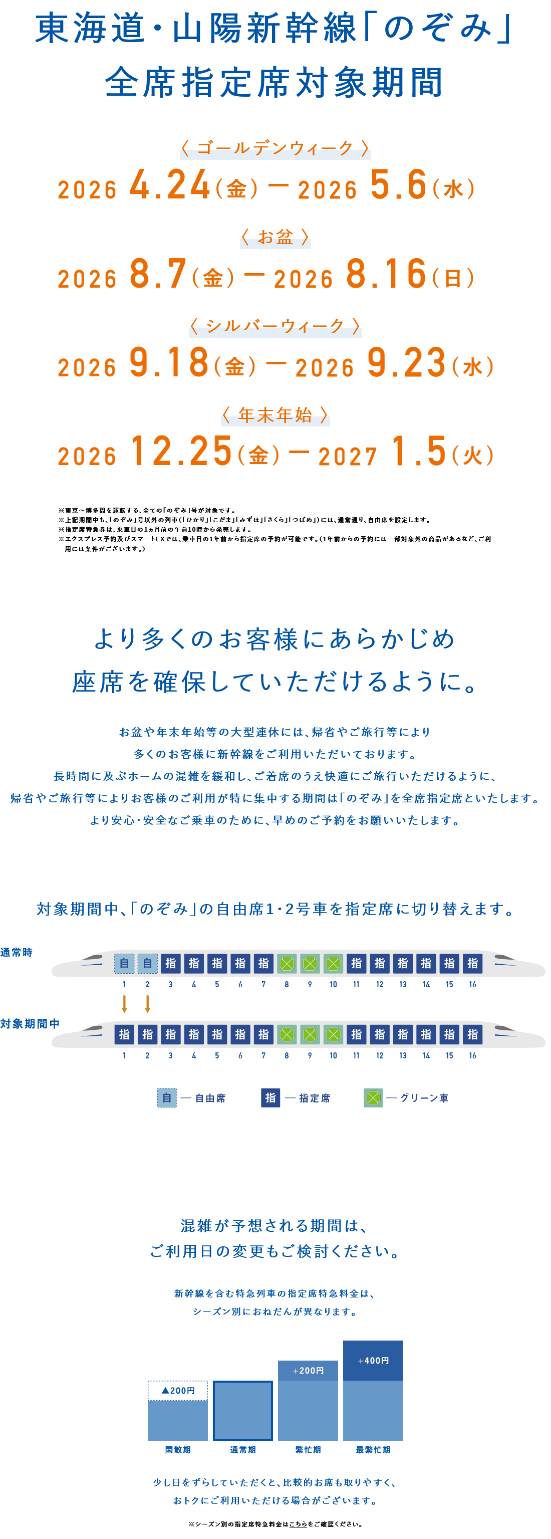 | … | 27無念Nameとしあき26/01/21(水)08:23:37No.1381642549+>繁忙期でもない限りは駅の近くまで来て乗れる電車がわかるようになってからでも指定席を予約できるはず |