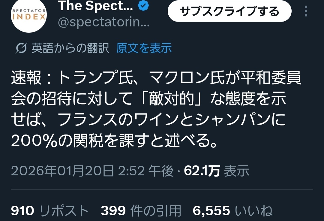 | … | 67無念Nameとしあき26/01/21(水)19:40:23No.1381750700+この組織の最終決定権は組織の長ではなくドナルド・トランプに帰属するってのがもうしゅごい |