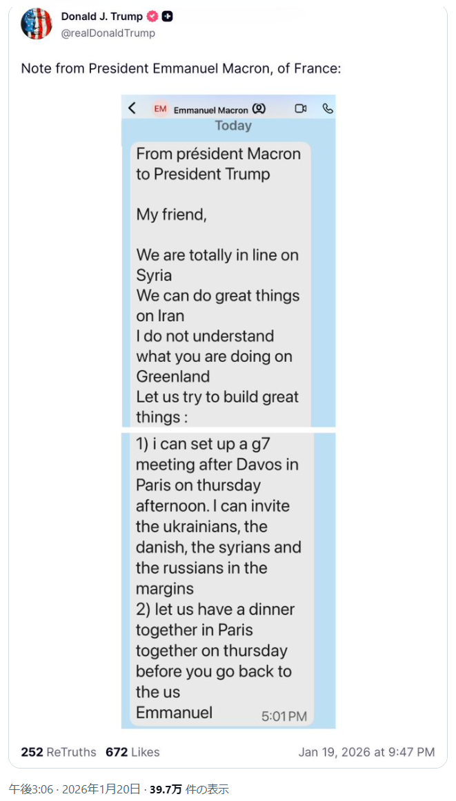 | … | 91無念Nameとしあき26/01/21(水)19:47:26No.1381752788そうだねx2 1768992446026.jpg-(179759 B) 敵対的なこと言うと関税吹っ掛けられるぞ |