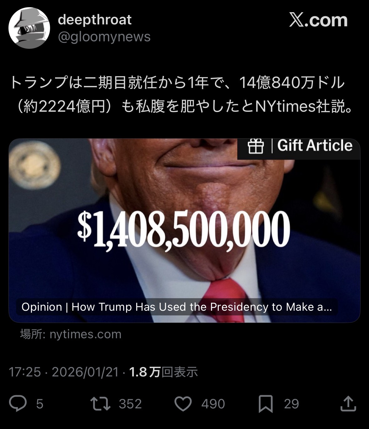 | … | 20無念Nameとしあき26/01/21(水)19:20:46No.1381745345+大統領をずっと続けるのは諦めたか |