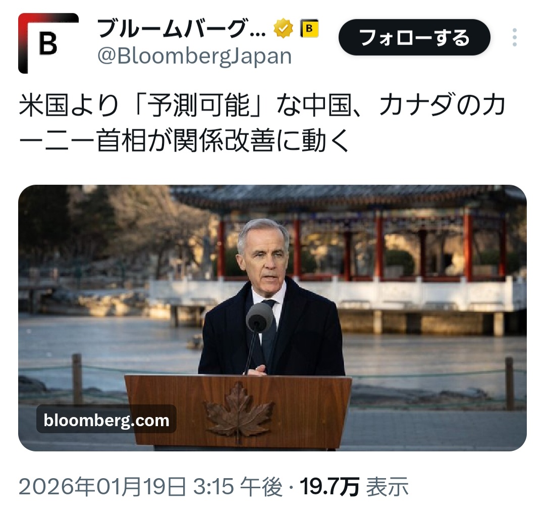 | … | 30無念Nameとしあき26/01/21(水)19:24:10No.1381746236そうだねx2まあ日本はこれに加盟しないと普通に中国の鼻先に武器無しで放り出されるわけですが |