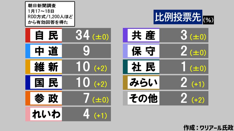 | … | 103無念Nameとしあき26/01/22(木)02:44:20No.1381844190+自民党の支持率は参議院の頃とあまりかわらんやん |