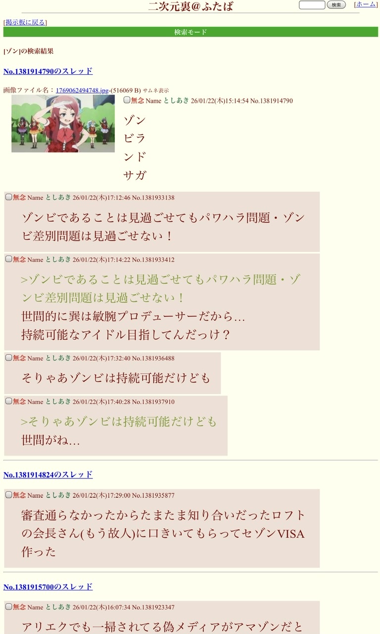 | … | 15無念Nameとしあき26/01/22(木)21:59:38No.1382003141+ 1769086778076.jpg-(276384 B) なぜかさっきのスレはゾンビラ ンド サガって空白の空き方してたのでそれで通知に引っ掛からなかったのかなと思ってる(futaber |