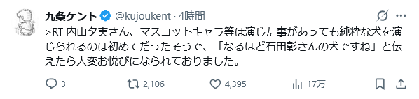 | … | 15無念Nameとしあき26/01/24(土)00:26:40 IP:183.86.*(thn.ne.jp)No.1382251444+>犬役は初めてでしたか |