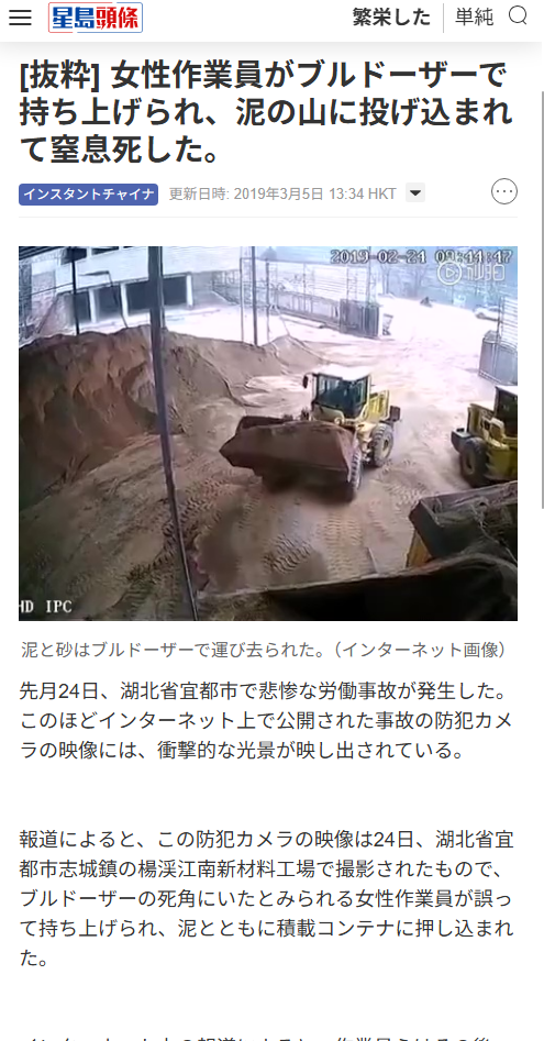 | … | 78無念Nameとしあき26/01/24(土)09:45:18No.1382296113+>女性作業員がブルドーザーで持ち上げられ、泥の山に投げ込まれて窒息死した。 |