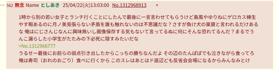 | … | 134無念Nameとしあき26/01/24(土)18:08:20No.1382392491そうだねx4ここ前々から口語調とか反語調の三行以上の長文見ると |