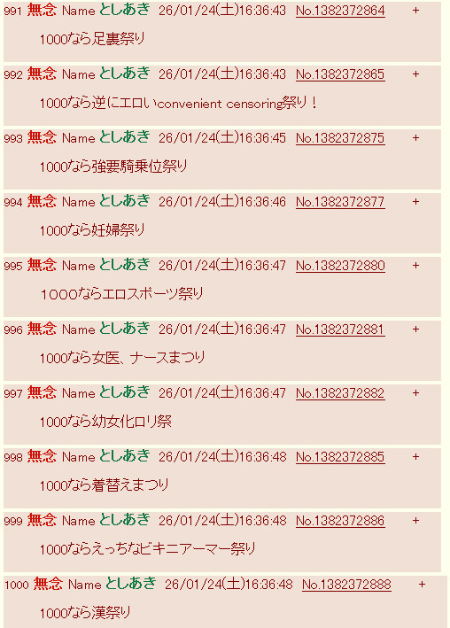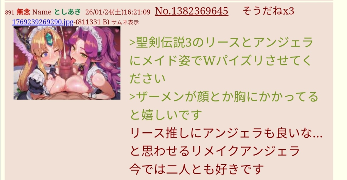 | … | 998無念Nameとしあき26/01/24(土)19:16:59No.1382409500+1000なら女の子にアナルを責められ祭り |