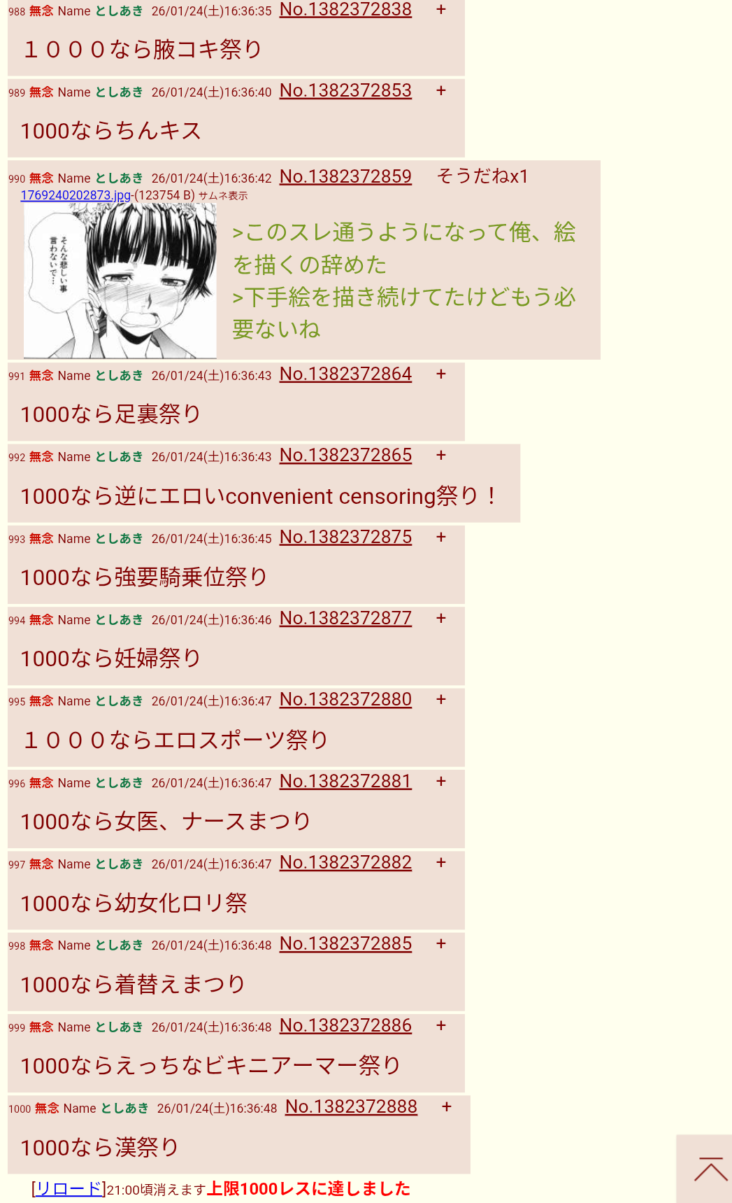 | … | 990無念Nameとしあき26/01/24(土)19:16:54No.1382409476+1000なら妊婦祭り |