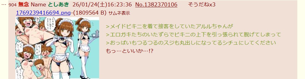 | … | 996無念Nameとしあき26/01/24(土)19:16:58No.1382409496+1000なら全裸(陰毛付き)まつり |