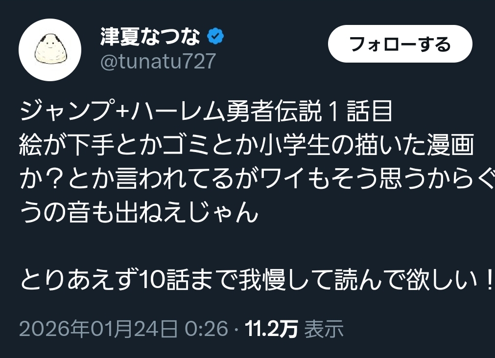 | … | 74無念Nameとしあき26/01/25(日)07:31:23No.1382522647そうだねx1>漫画の出来よりもまずSNSをやめろ |