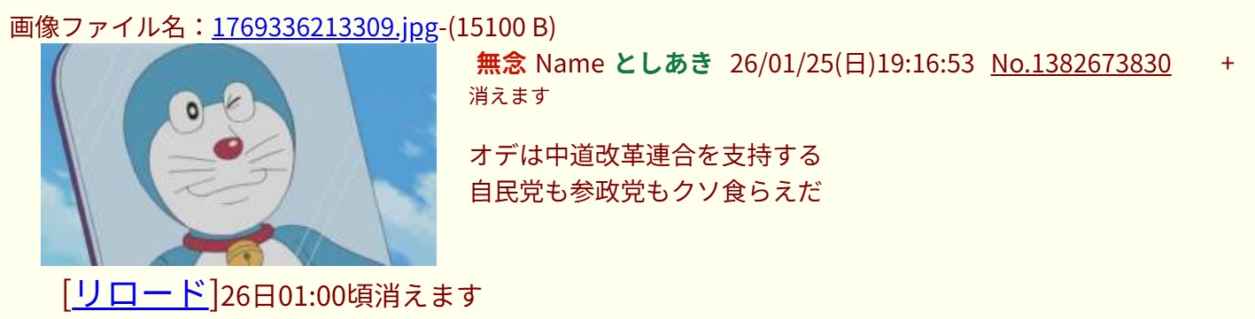 | … | 26無念Nameとしあき26/01/25(日)19:28:31No.1382676755そうだねx1>>1769336625092.jpg |