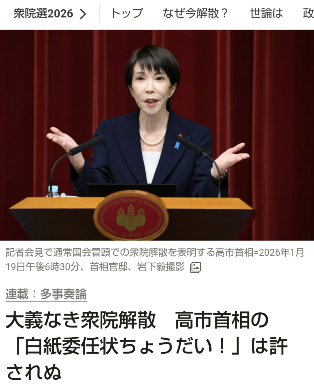 | … | 58無念Nameとしあき26/01/26(月)20:33:46No.1382902999+>ほんでアベを狂ったように叩いてたメディアどうすんのこれ |