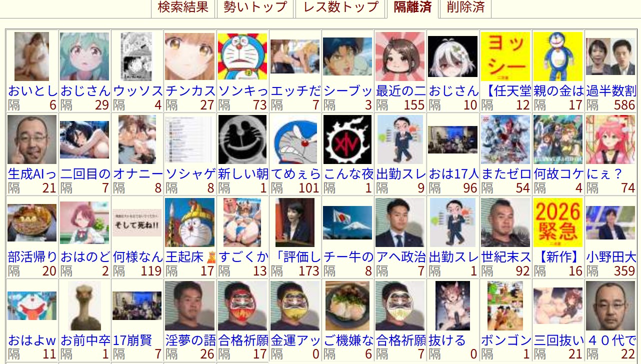 | … | 15無念Nameとしあき26/01/27(火)12:01:40No.1383014668+河村くんが立てたスレは豚臭いからすぐ分かるな |