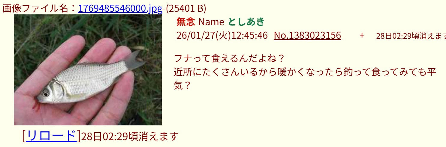 | … | 27無念Nameとしあき26/01/27(火)12:08:55No.1383015807+https://img.2chan.net/b/res/1396308229.htm |