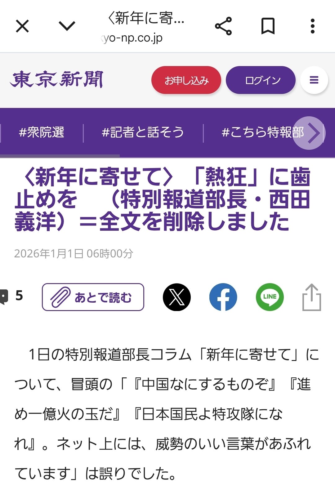 | … | 5無念Nameとしあき26/01/27(火)12:17:55No.1383017377そうだねx17 1769483875616.jpg-(186769 B) 捏造記事で有名な東京新聞か |