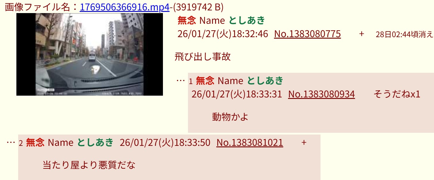 | … | 96無念Nameとしあき26/01/27(火)18:46:53No.1383084100+https://may.2chan.net/b/res/1383082826.htm |