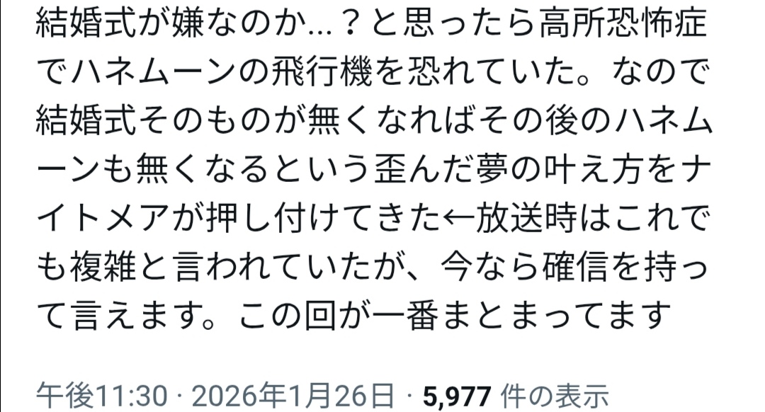 | … | 214無念Nameとしあき26/01/27(火)19:53:44No.1383102490+悪夢の定義が未だに分からん |