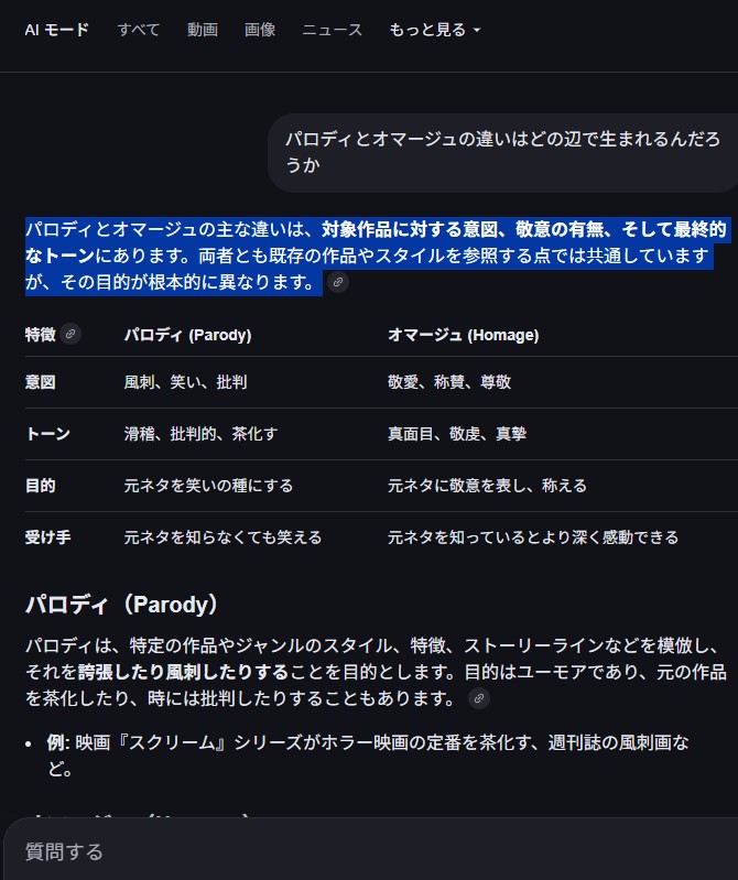| … | 2無念Nameとしあき26/01/28(水)06:55:05No.1383198129+パロディとオマージュの違いはどの辺で生まれるんだろうか |