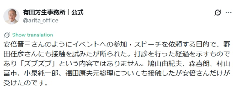 | … | 37無念Nameとしあき26/01/28(水)15:53:27No.1383268885+>歴代総理も接触を受けたが断ったし野田さんもお断りされたんですけど! |