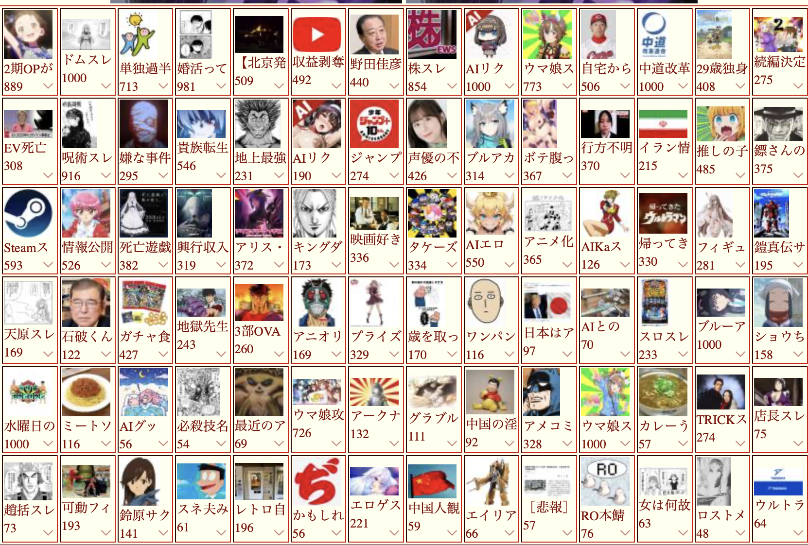 | … | 18無念Nameとしあき26/01/29(木)07:08:15No.1383416043+>久しぶりに来たんだけどここって政治はダメなんじゃなかったっけ |