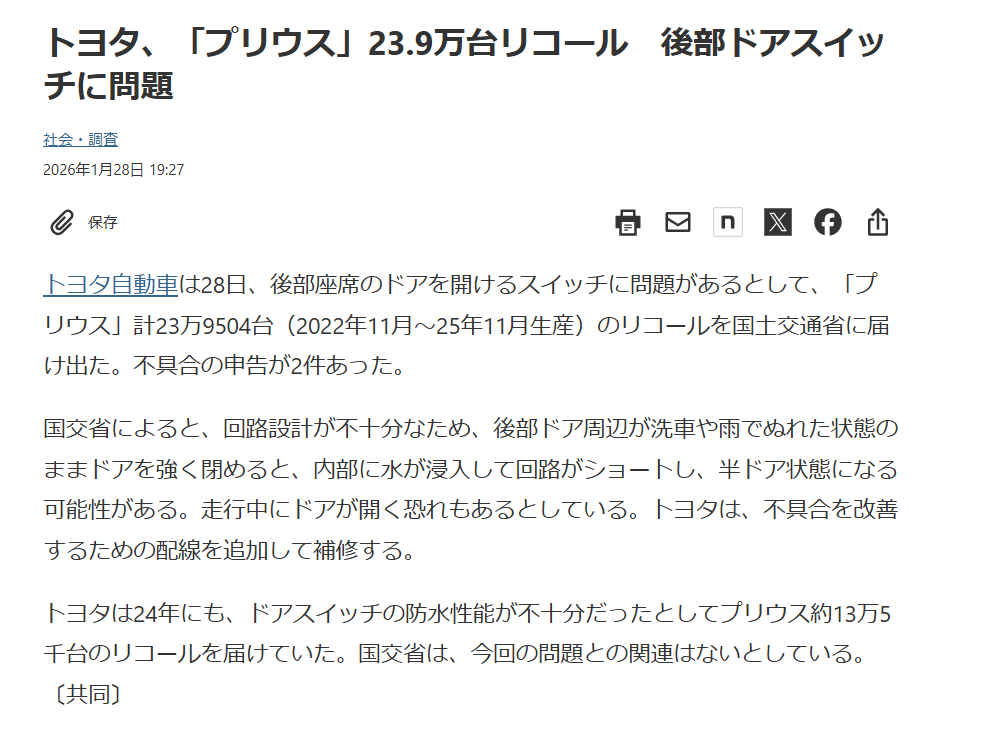 | … | 81無念Nameとしあき26/01/29(木)11:57:19No.1383447136+>新型プリウスもダメだった |