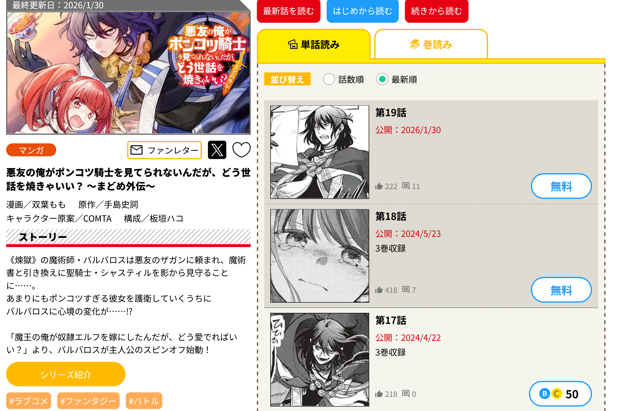 | … | 106無念Nameとしあき26/01/30(金)20:40:27No.1383759947+>>コミックガルド毎週金曜更新だったのがいつの間にか毎日更新になってて今まで読んでたのの最新話追うのが面倒になっとる |