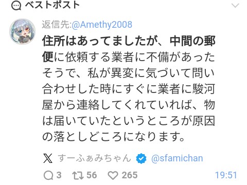 | … | 40無念Nameとしあき26/01/31(土)00:36:07No.1383824176+高額品までメール便で送るなよ |