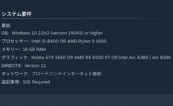| … | 160無念Nameとしあき26/01/30(金)23:43:06No.1383812934+ 1769784186457.png-(52049 B) 最新作の最低動作環境 |