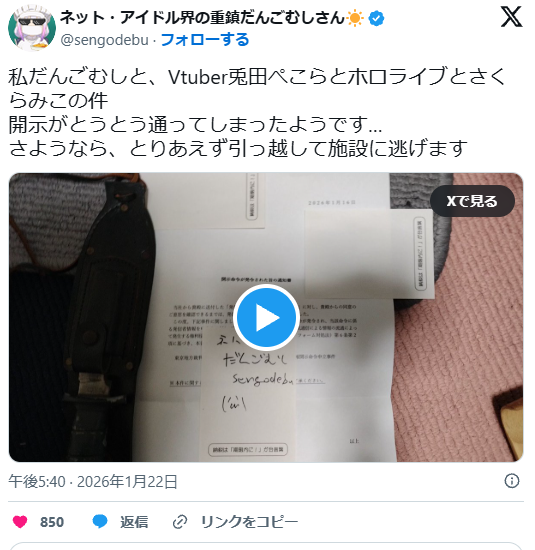 | … | 87無念Nameとしあき26/01/31(土)11:18:21No.1383878730+https://x.com/yujilovehappy29/status/2017209107124760621 |